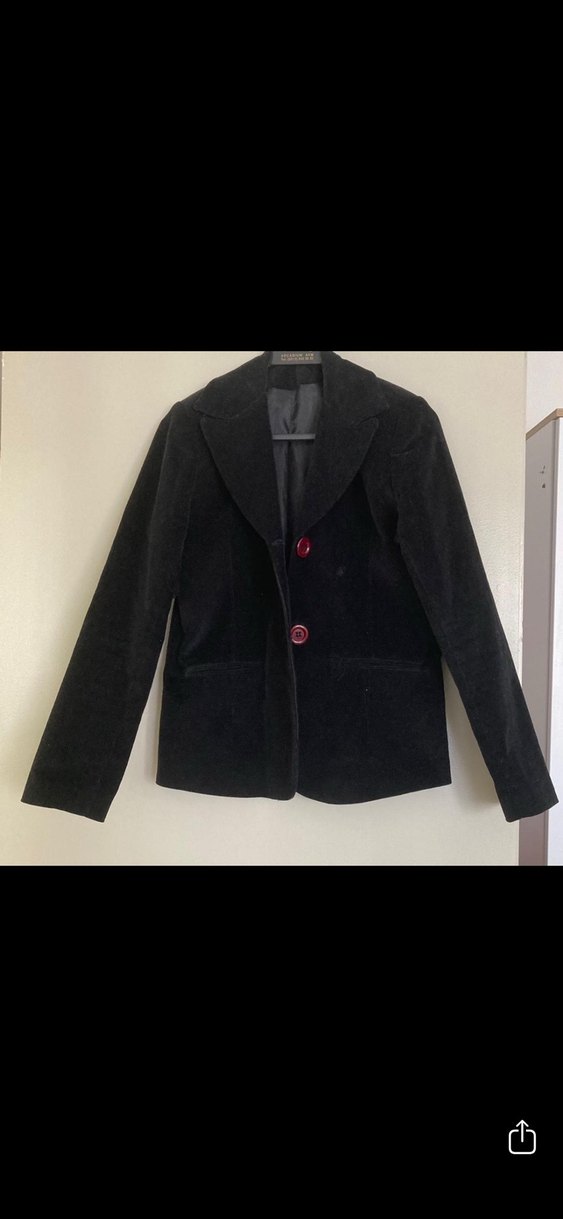Siyah kadın blazer ceket, kesik yaka ve düğmeli ön tasarıma sahiptir. Normal kesim ve uzun kolludur, midi boyda ve desensizdir. Ofis kullanımı için uygundur.