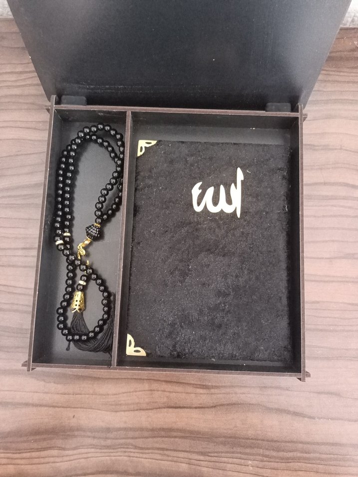 Siyah Kadife Kaplı Kuran-ı Kerim ve Tesbih Seti