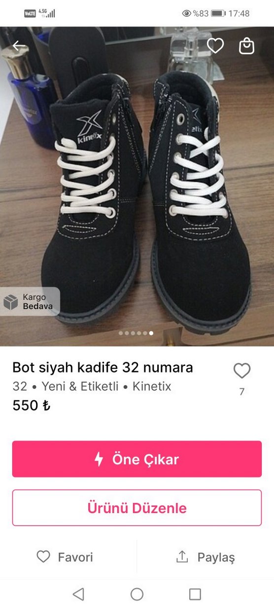 Sokak stili siyah kadife Kinetix bot, 32 numara, beyaz bağcıklı ve etiketli. Kargo ücretsiz.