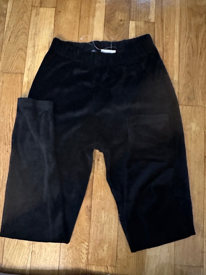 Siyah kadife kumaştan yapılmış, desen içermeyen, loose fit kız taytı Sokak stili için rahat ve sade bir modeldir.