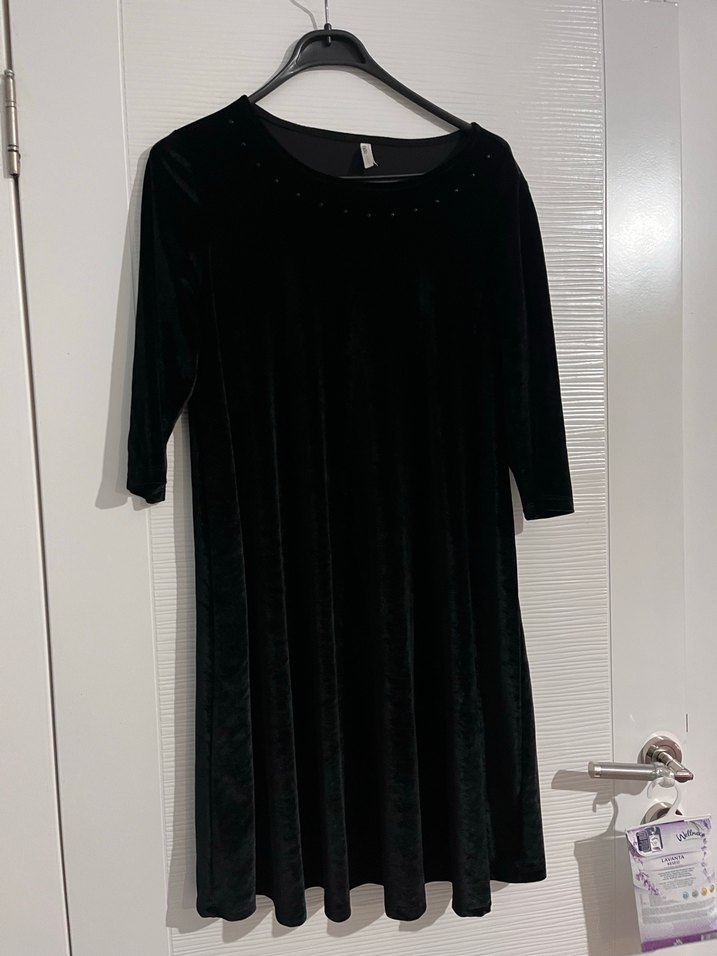 Siyah kadife midi boy, uzun kollu, yuvarlak yakalı, piliseli ve salaş kesim elbisedir. Gotik ve bohem tarzına uygundur.