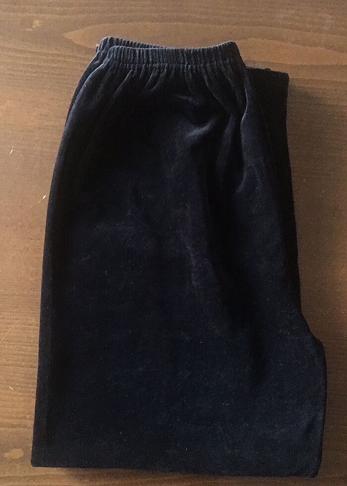 Siyah Kadife Pijama. Kullanılmadı. Boy; 94 cm. Bel; 32 cm. Basen; 56 cm. Rengi ışıktan açık çıktı. Standart beden, beli lastikli. #eşofman #pijama