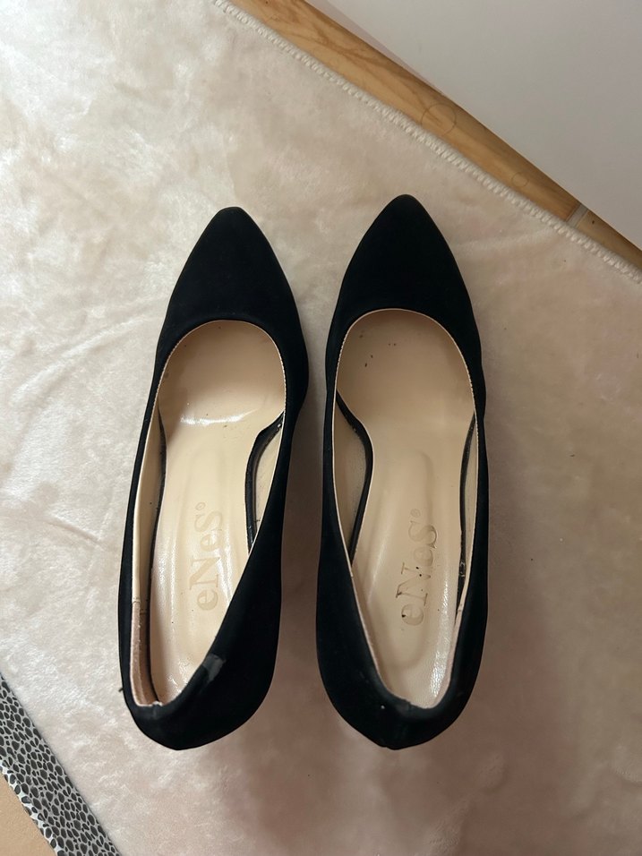 38 numara, iki kez giyildi kusurunu son fotoğrafa ekledim. Bol paça pantolon veya uzun elbiseyle giyildiğinde arkasındaki kusur gözükmüyor Siyah, minimal ve gotik tarzda stiletto topuklu ayakkabılar. Kauçuk malzemeden, klasik ve ofis için uygun, zahmetsiz şıklık sunar. Bol paça pantolon veya uzun elbiseyle giyildiğinde arkasındaki küsür gözükmüy
