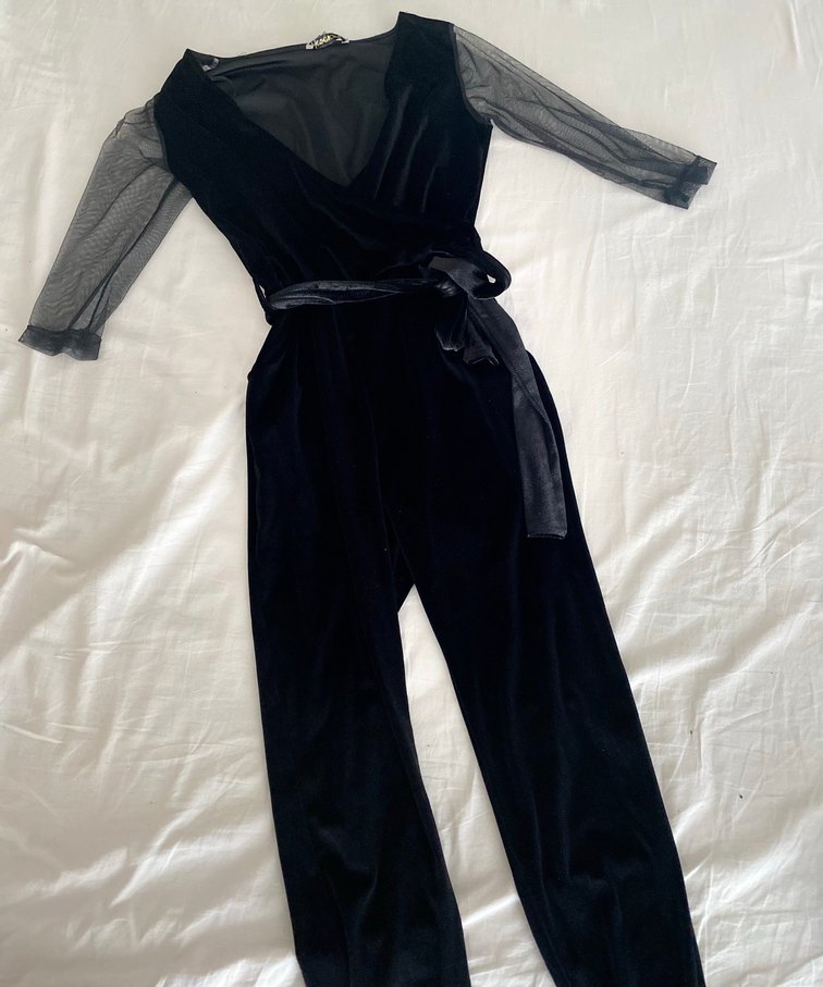 Kadife tulum kolları tül detaylı