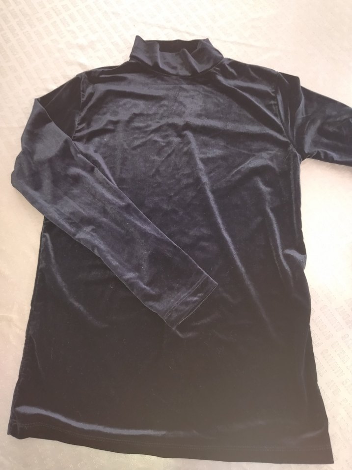 Siyah kadife kumaştan yapılmış, uzun kollu ve yüksek yakalı hamile bluzu. Fitted kesim ve normal uzunlukta, rahat ve şık goth tarzı sunar. marka temsili