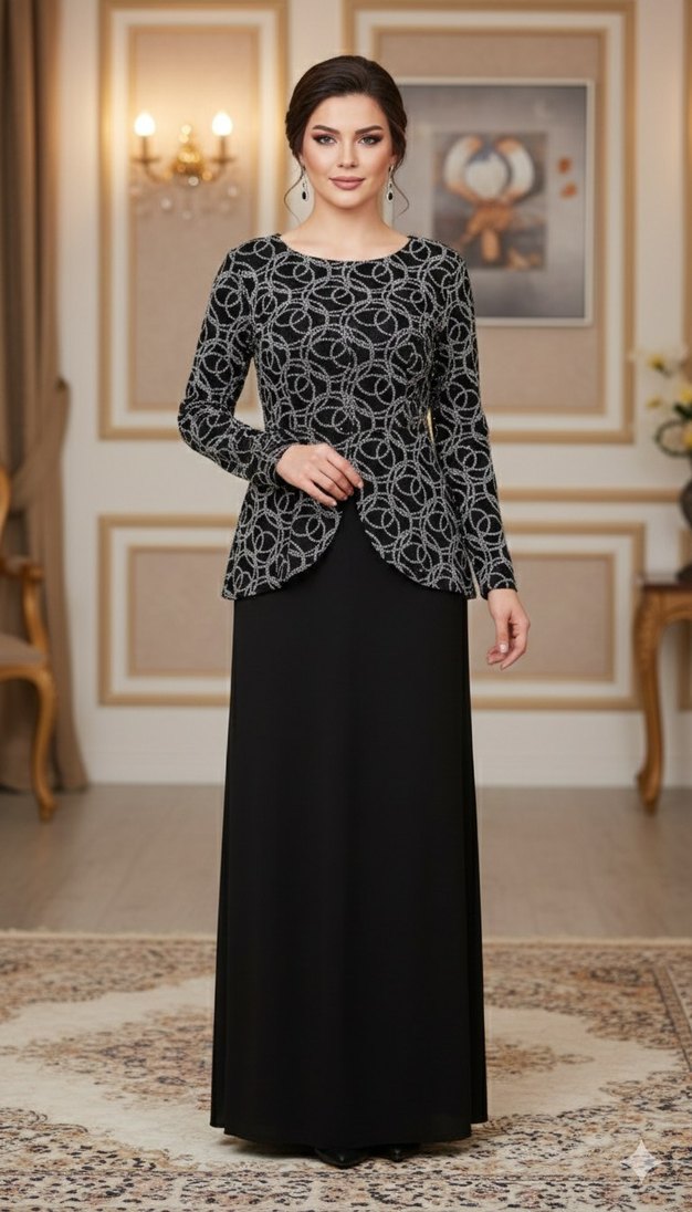 Özel gün ve davetlerde rahatlıkla tercih edilebilecek şık bir abiye elbisedir. Üst kısmı parlak desen detaylı, alt kısmı esnek düz siyah kumaştan oluşur. Vücutta çok zarif durur. Sadece 1 kez düğünde giyildi, tertemiz ve deformesizdir. Uzunluk: 130 cm Göğüs: 50 cm Beden: S/M uyumlu Kumaş esnek, içi astarlıdır ve iç göstermez. ✨ Günlük değil, tamamen özel gün kullanımına uygundur. Yeni gibi, ihtiyacı olan gönül rahatlığıyla tercih edebilir.