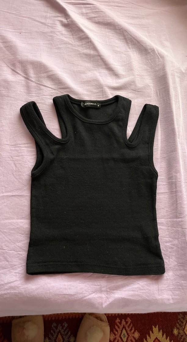 Düz siyah, askısız ve fitted kesim, omuz kısmında özgün kesim detayları bulunan sentetik kumaştan kadın atlet. Trendy ve rahat görünümler için ideal.