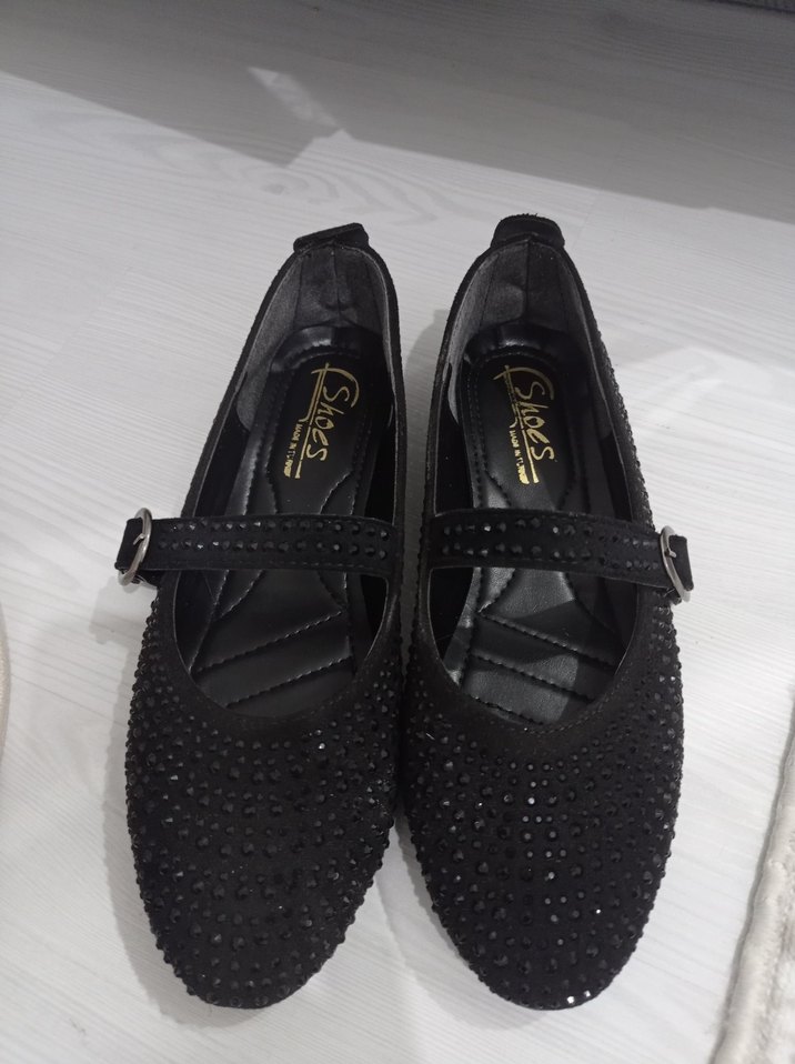 Siyah yılan desenli ve tokalı bantlı, blok topuklu kadın babet. Trendy ve günlük kullanıma uygun.