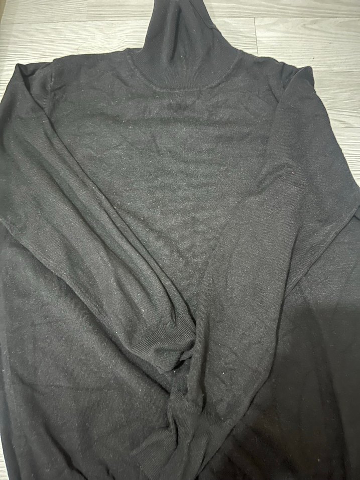 Siyah renkte, ince keten kumaştan yapılmış, balıkçı yaka ve uzun kollu, vücuda oturan kadın kazak. Düz ve rahat tarzıyla günlük kullanıma uygundur. Hiç bir defosu yoktur