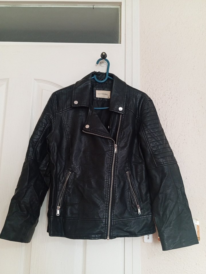 Siyah Kadın Biker Deri Ceket