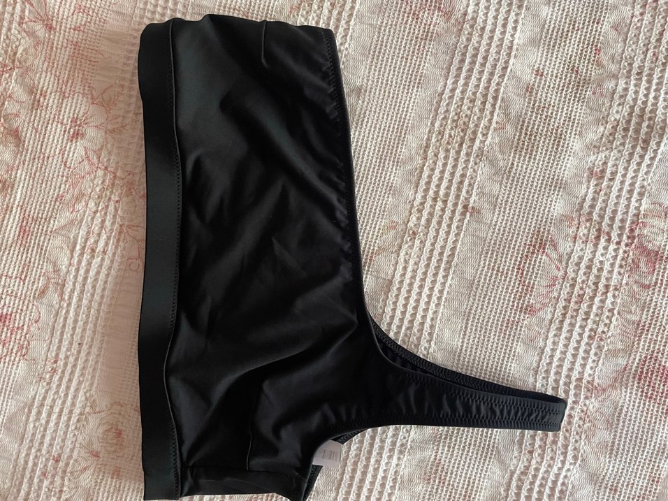 , kolsuz ve oturan kesimli siyah kadın bikini Biker tarzında, midi boyda ve desen içermeyen şık tasarım.