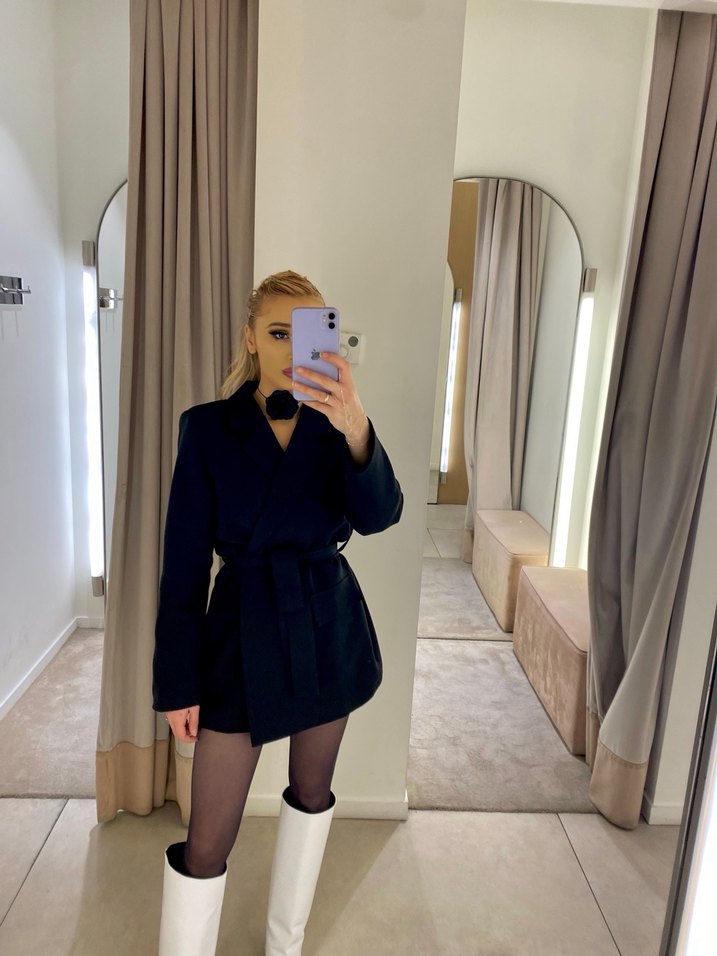 Siyah, rahat kesim ve yaka detaylı bu kadın blazer ceketi, gotik tarzı iş şıklığıyla buluşturuyor.