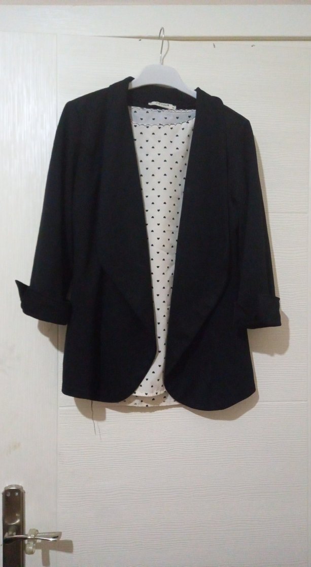 Uzun kollu, siyah kadın blazer ceket. Normal uzunlukta, regular fit ve yakası kesikli. Ofis için uygun.