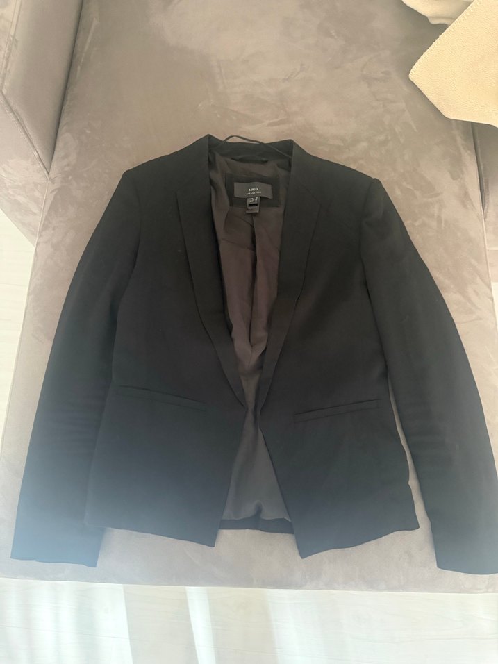 Siyah, kesikli yakalı ve uzun kollu kadın blazer ceket. Ofis için uygun, normal boy ve rahat kesime sahip, şık ve sade tasarım.