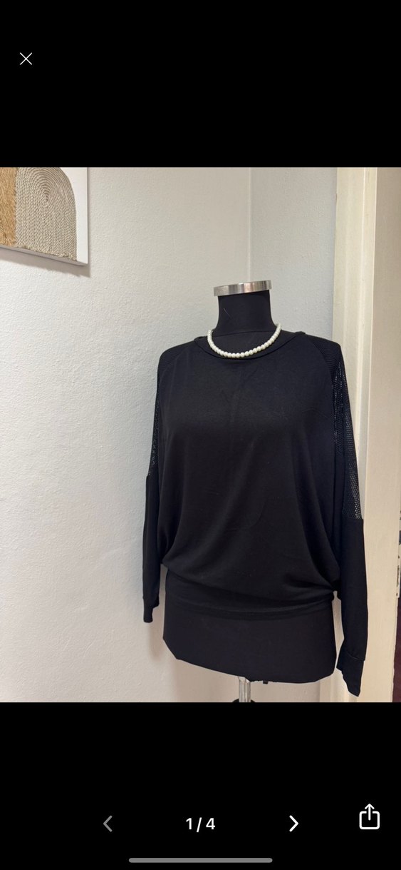 Siyah triko kumaştan, yuvarlak yaka ve uzun kollu, bol kesim kısa uzunlukta bluz. Minimalist ve desensiz tasarımıyla günlük kullanıma uygun, zahmetsiz şıklık sunar.