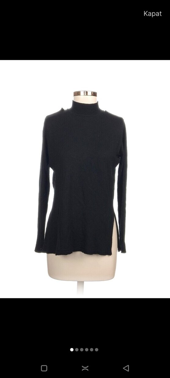 Bu siyah yün triko, boğazlı ve uzun kollu olup, günlük kullanıma uygun minimalist ve çağdaş bir tarz sunar.