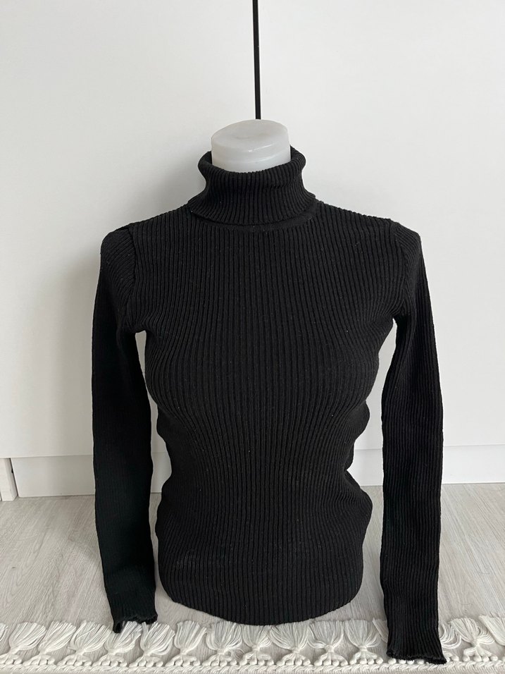 Siyah, boğazlı ve uzun kollu ince triko kazak,