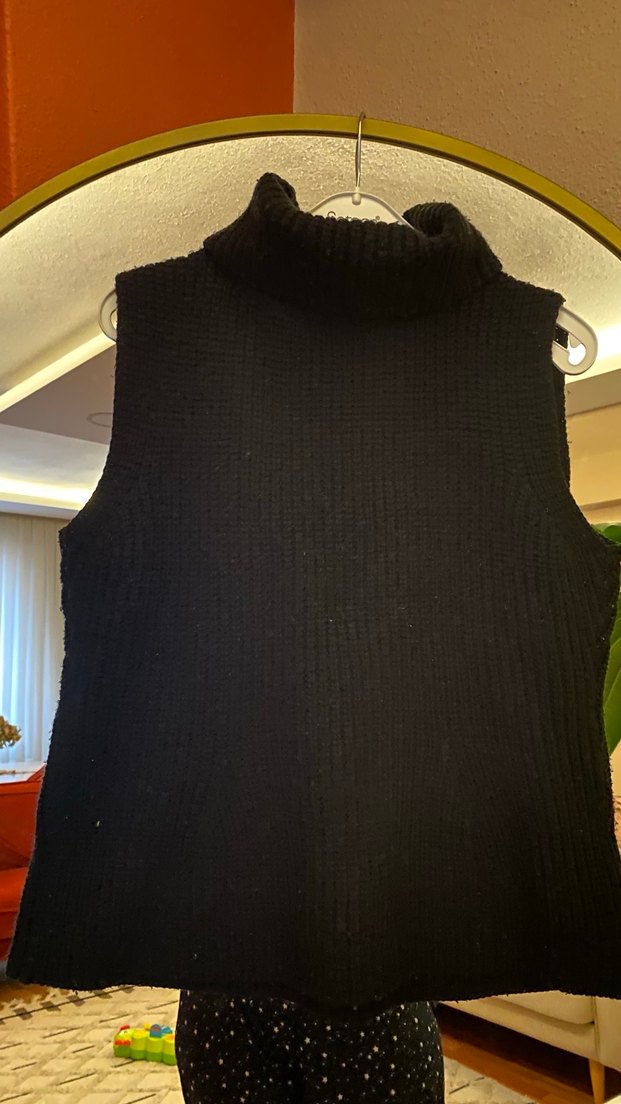 Siyah Kadın Boğazlı Kolsuz Triko Kazak