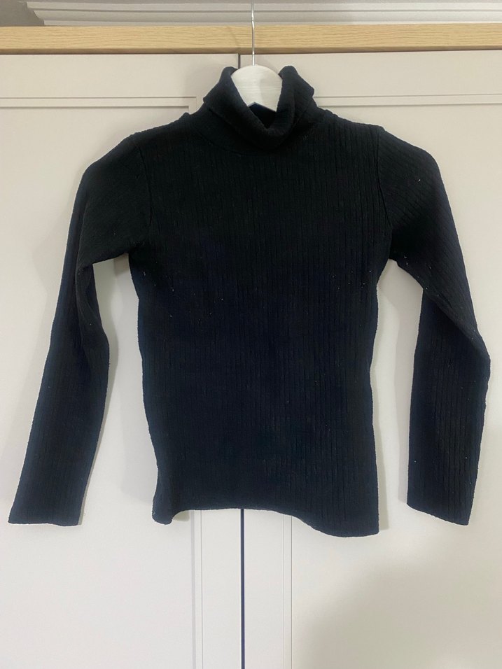 Yün kumaştan, boğazlı ve uzun kollu, siyah renkli, vücuda oturan triko kazak. Rahat ve günlük kullanıma uygun.