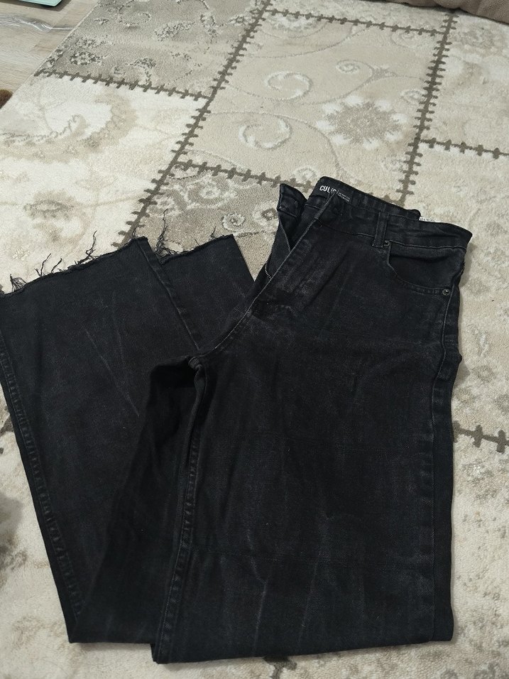Siyah Kadın Bol Kesim Midi Kot Pantolon