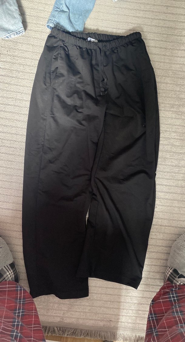 S beden yazıyor fakat s için oldukça büyük bence m giyebilir bol siyah eşofman. Hiç giyilmedi. Bu siyah kadın pantolonu, salaş kesim ve midi boyda, yumuşak sentetik kumaştan üretilmiştir. Günlük kullanıma uygun, zahmetsiz şıklık sunar.