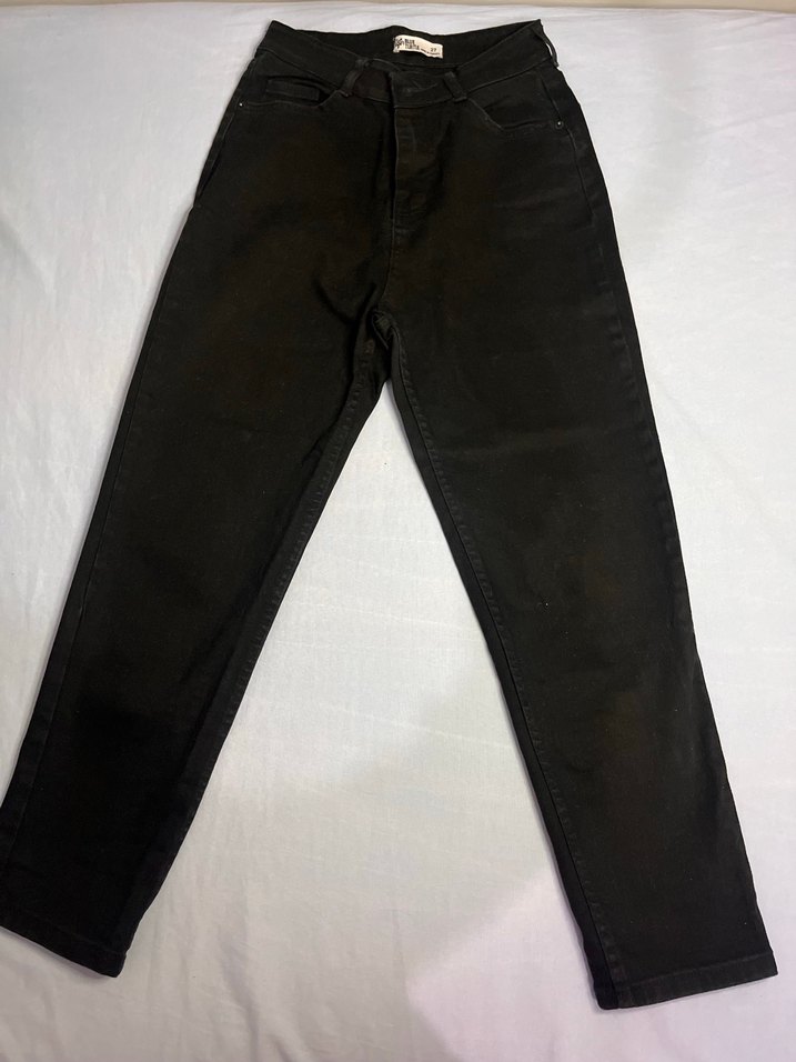 Siyah renkte, regular fit ve midi boyda, düz desenli, sentetik kumaştan yapılmış kadın jean pantolon. Günlük kullanıma uygun, sade ve rahat bir model.