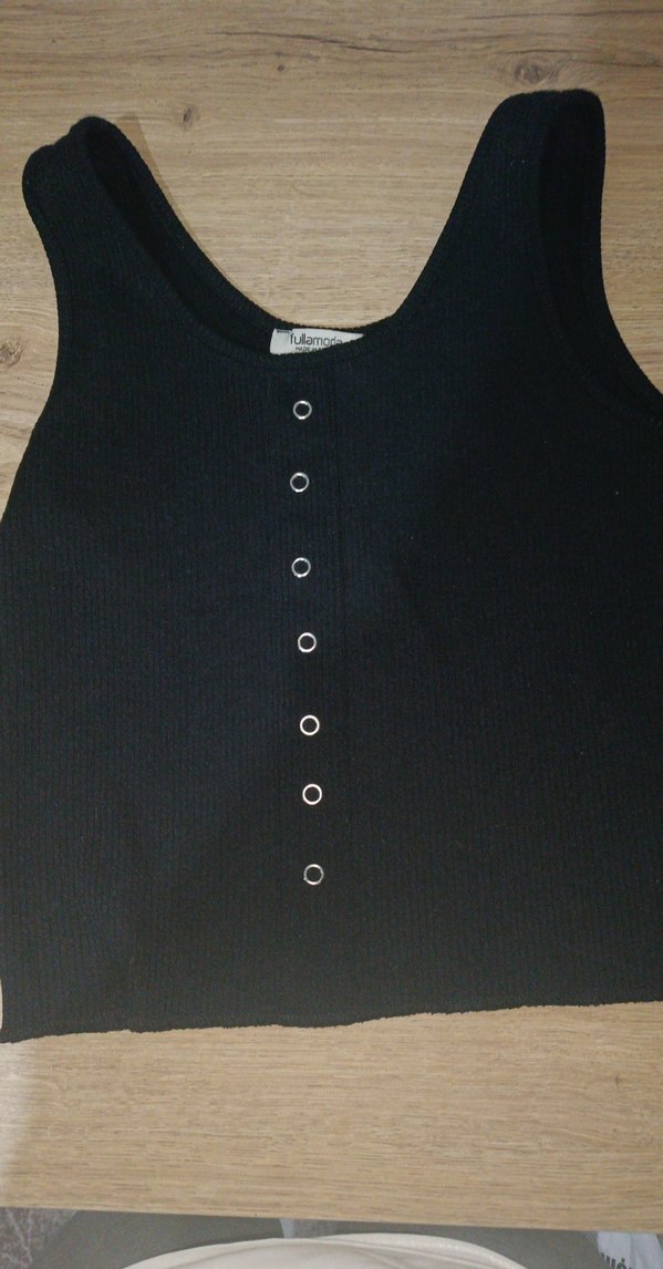 Düğmeli, siyah, kolsuz ve vücuda oturan kadın tank top. Önünde düğme detayları ve yuvarlak yakası bulunur. Minimalist gotik tarzda, sentetik kumaştan üretilmiştir.