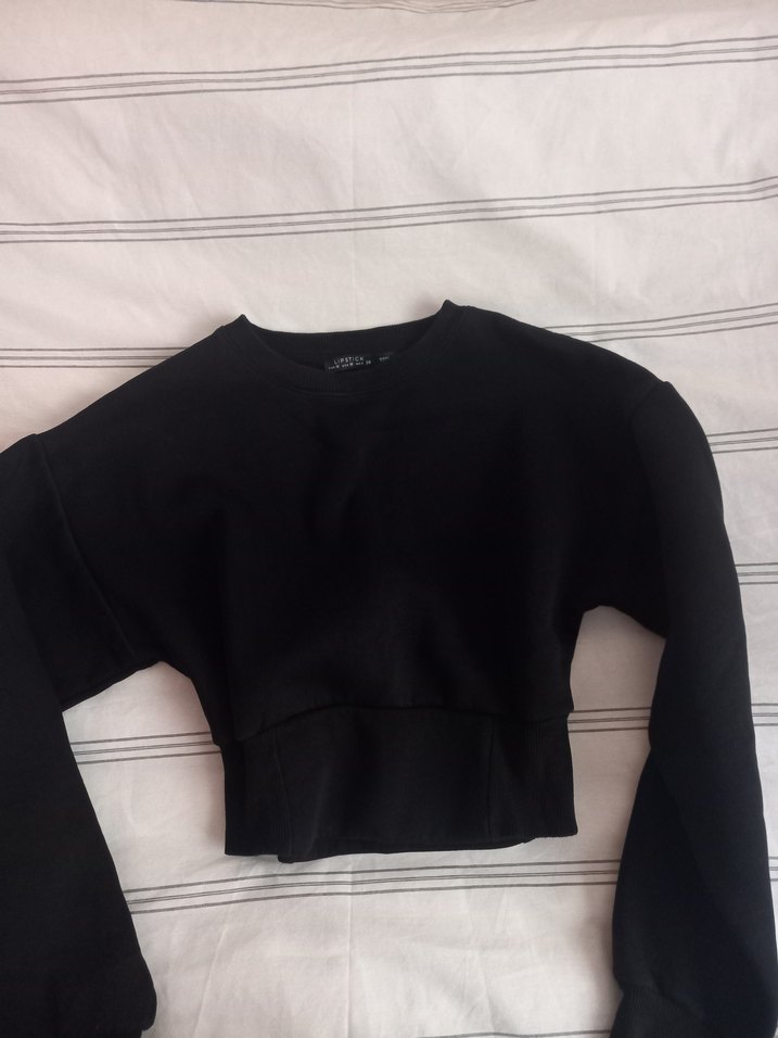 Siyah Kadın Crop Sweatshirt