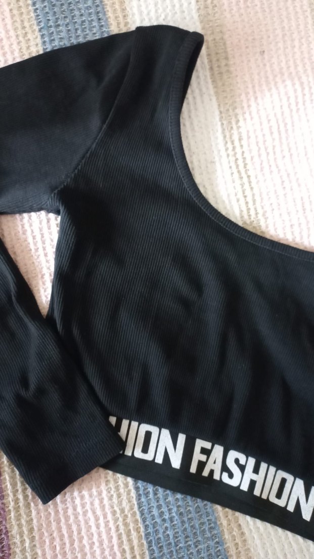 Siyah, uzun kollu ve tek parça sentetik kumaştan yapılmış dar kesim crop top. Spor ve rahat tarz sunar, ONFASHI markası etek ucunda yazılıdır. ⚫