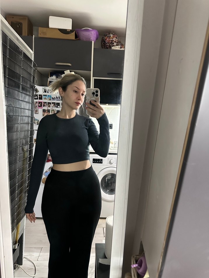 Siyah Kadın Crop Top Uzun Kollu