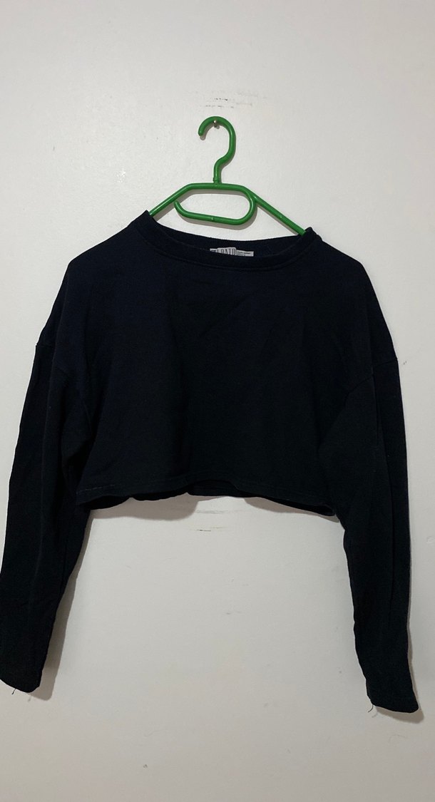 Siyah, uzun kollu kadın crop top, salaş kesimi ve yuvarlak yakasıyla rahat bir kullanım sunar. Minimalist ve sokak modası tarzında, yumuşak ve sıcak kumaştan üretilmiştir. ✨
