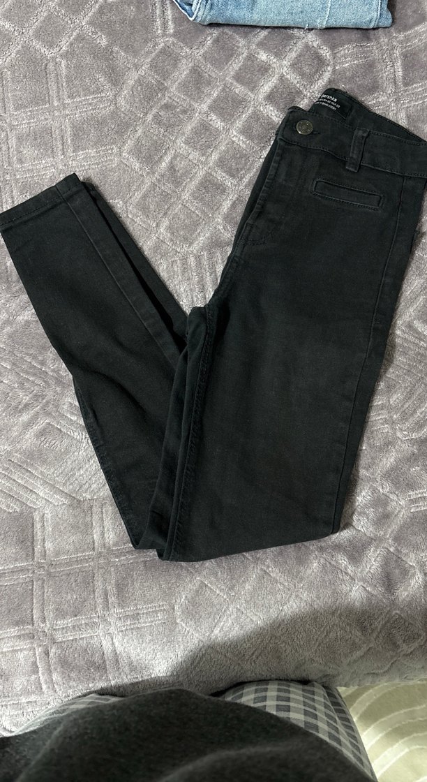 Siyah dar kesim denim pantolon, normal midi boyda, sade ve şık tasarımıyla günlük kullanıma uygun.