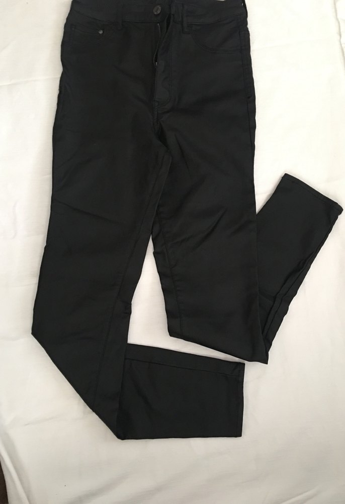 Dar kesim, midi boy siyah kadın pantolon, yumuşak sentetik kumaştan, Deri görünümlü minimalist sokak stili ve zahmetsiz şıklık sunar. Bir kere kullanıldı.