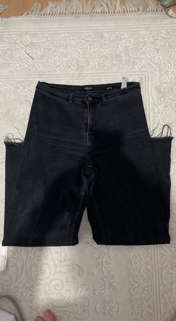 Siyah renk, dar kesim midi uzunlukta kot pantolon. Tokalı detaylarıyla sokak stiline uygun, günlük kullanıma elverişli.( bir süre gidildiğinden dolayı bacak arasında biraz aşınma bulunmakta )