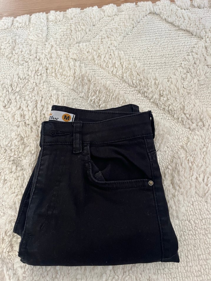 siyah dar kesim tam boy uzunlukta kadın kot pantolon. Günlük sokak stili için uygundur.