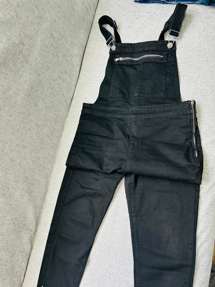 Siyah Kadın Denim Askılı Tulum
