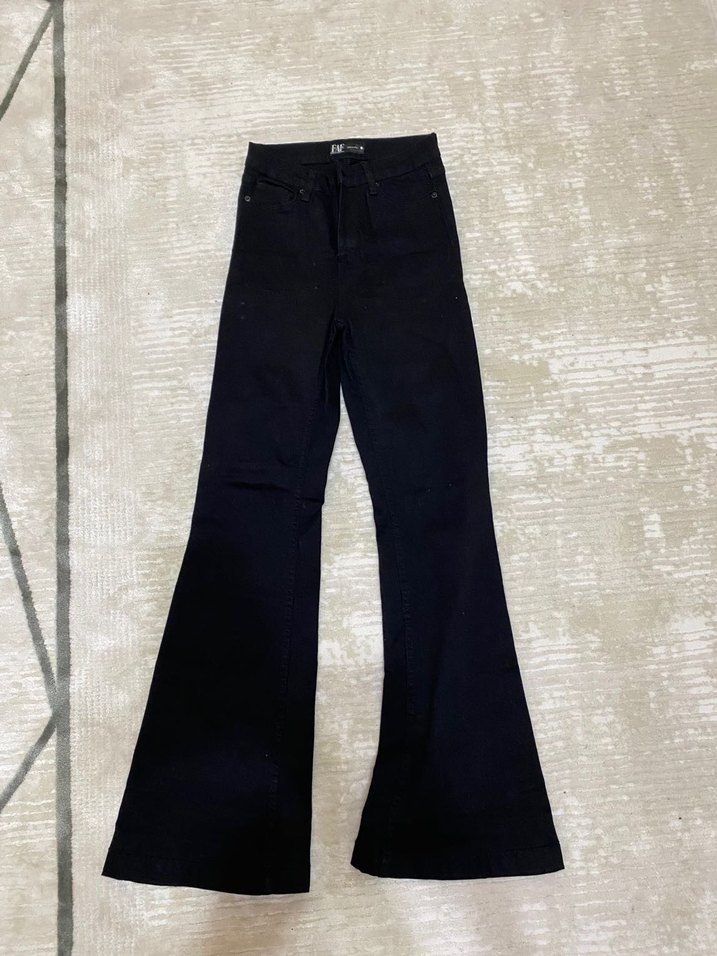 Siyah, dar kesim, ispanyol paça midi uzunlukta denim kadın jean. Günlük kullanıma uygun, rahat ve şık sokak stili pantolon.