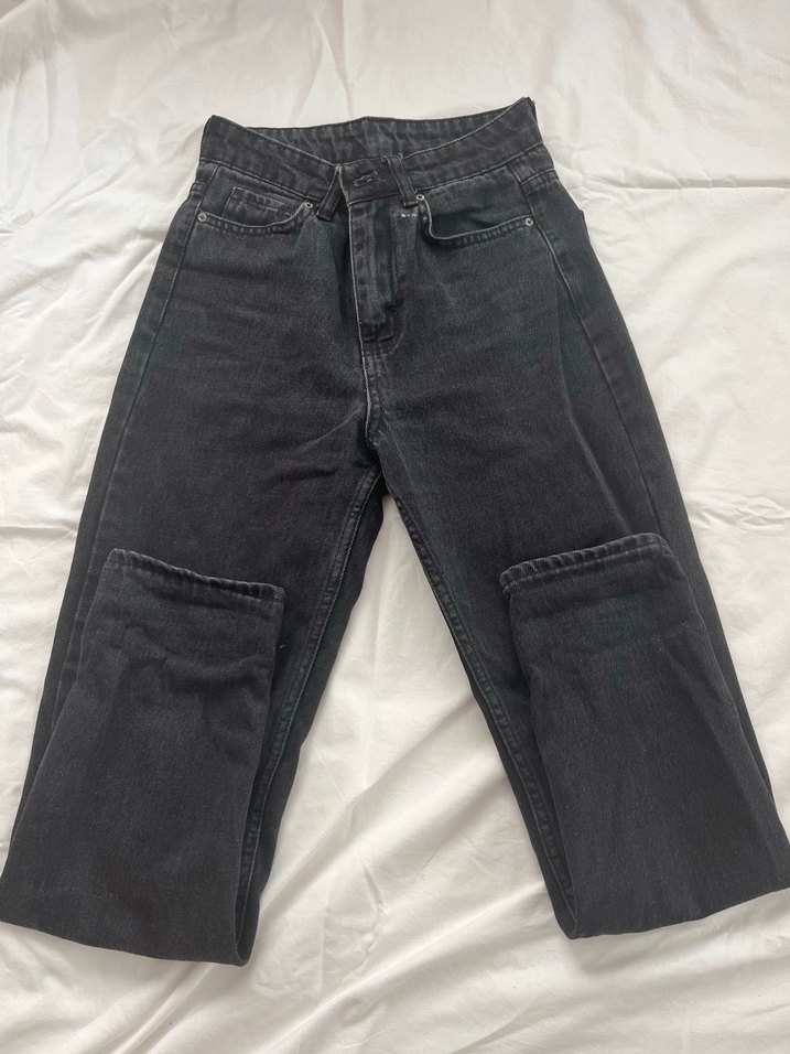 Siyah denim kumaştan, midi boy ve regular fit kesime sahip kadın jean