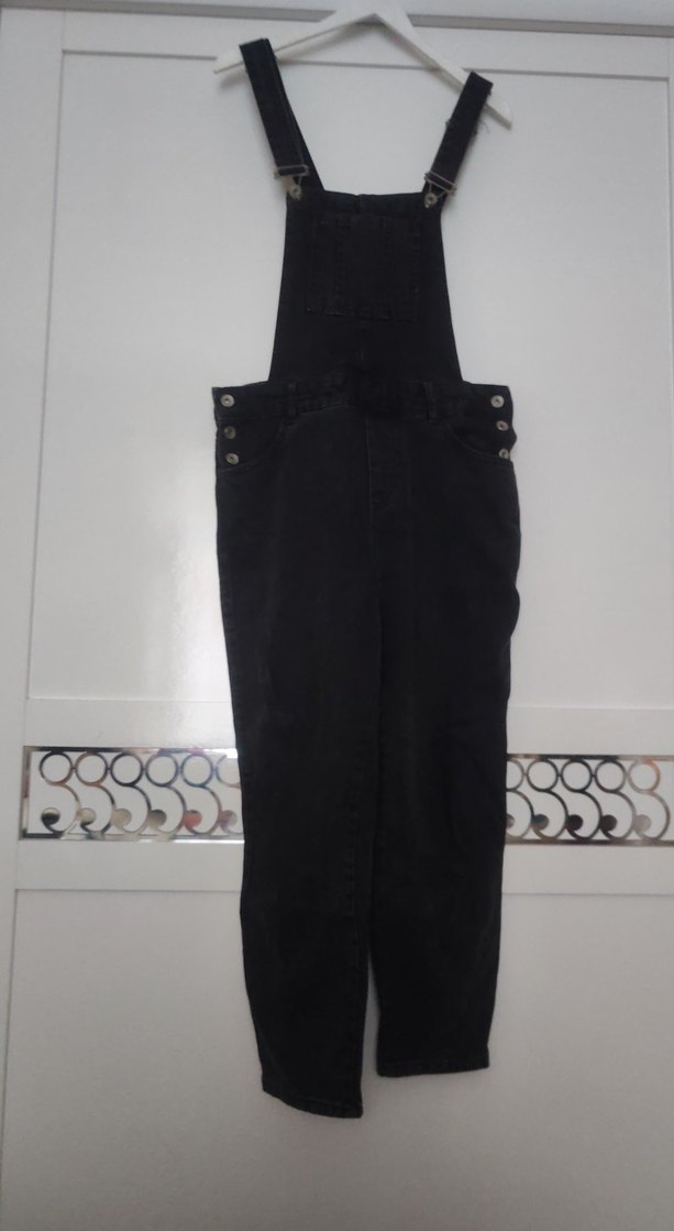 Siyah denim midi tulum, ayarlanabilir tokalı askılar ve regular fit kesim ile günlük kullanıma uygun. Grunge punk sokak tarzını yansıtır. ✨