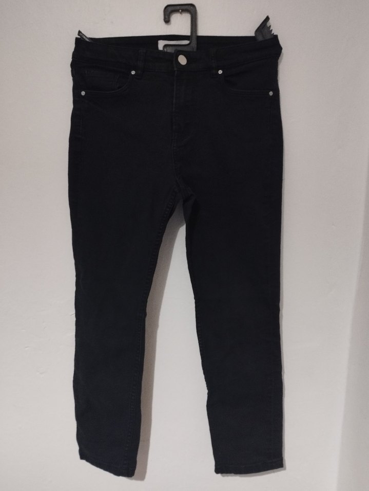 Siyah renkli, midi boy ve regular fit kesime sahip kadın denim pantolon. Günlük kullanım için rahat ve şık bir tercih.