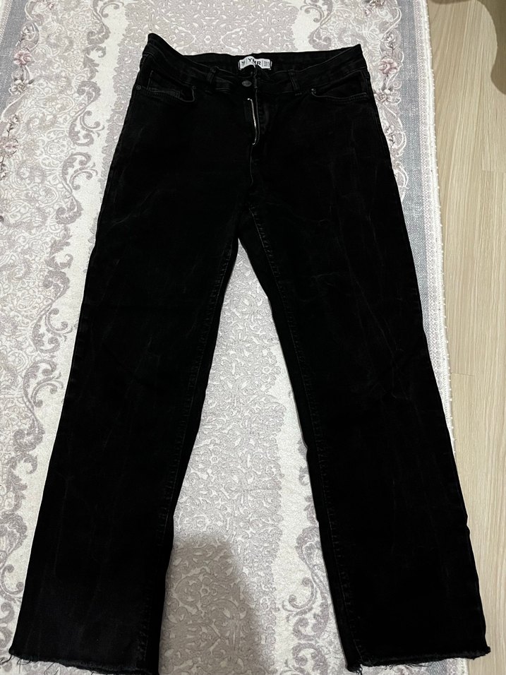 Siyah renkli, normal kesim ve midi boy kot pantolon, . Günlük kullanım için uygundur