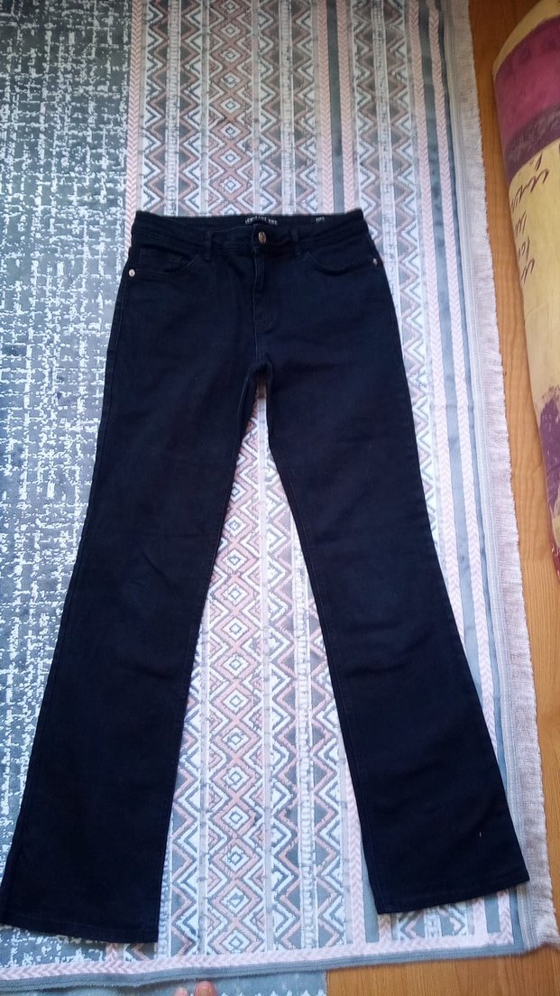 Siyah renkli, tokalı, normal boy ve regular fit kadın denim pantolon. Günlük kullanım ve sokak stiline uygundur. beden w28/32