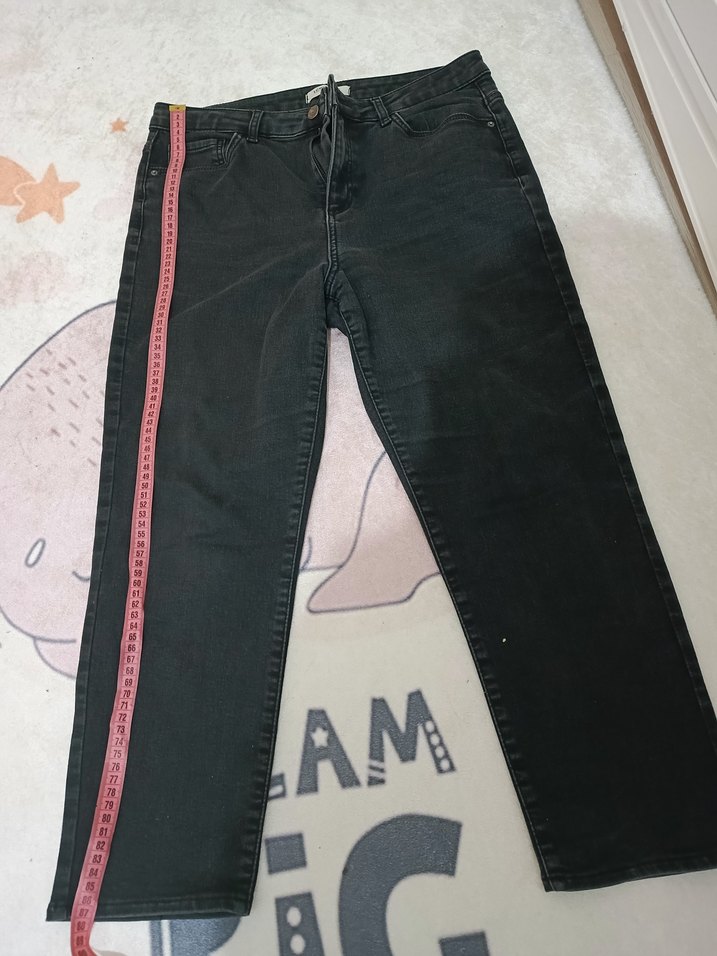 Siyah renk, regular fit, elastik detaylı kadın denim pantolon. Midi boy, desen içermeyen, günlük ve sokak stiline uygun.