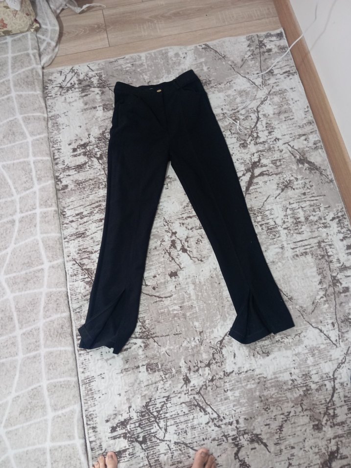 Siyah renkte, regular fit ve ispanyol paça kesime sahip denim pantolon. Paça kısmında yırtmaç detayı bulunur, günlük rahatlık ve şıklık sunar.