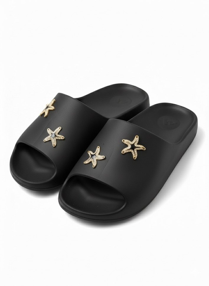 Siyah Kadın Deniz Yıldızı Detaylı Terlik