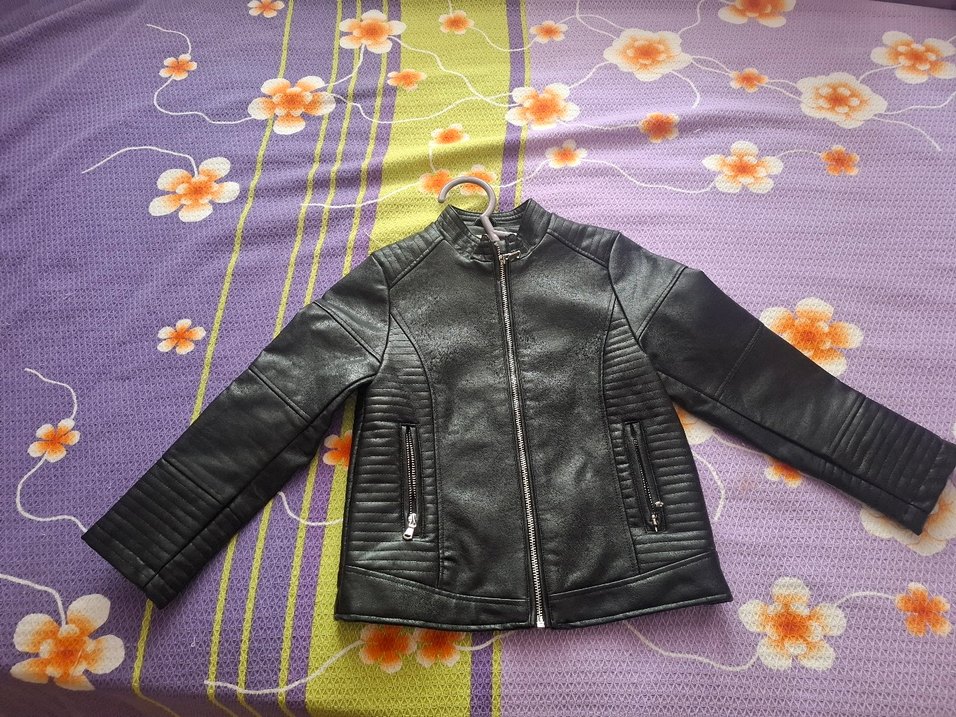 Siyah Kadın Deri Biker Ceket( 122 cm 7 yaş)