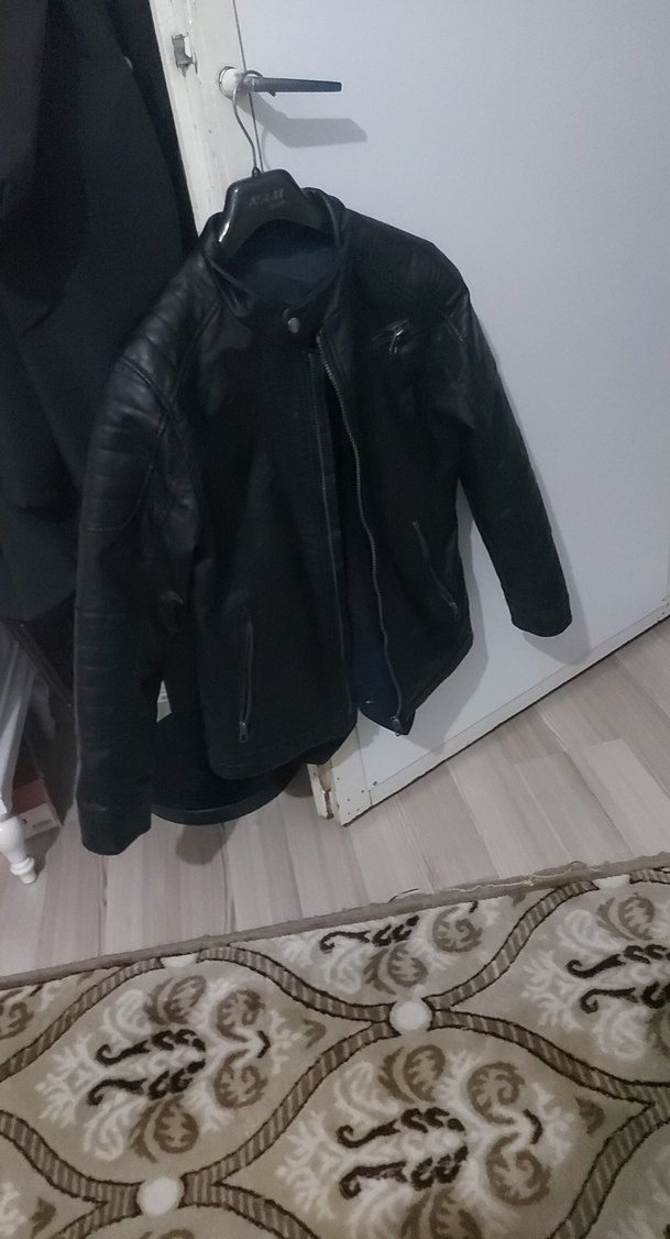 Bu siyah deri biker ceket, oturmalı kesimi, yakalı ve tokalı detaylarıyla dikkat çeker. Uzun kollu ve normal boydadır, günlük ve sokak stiline uygundur. Yeni urun Bi defa giyildiiki göğüs 44 45uzunlugu60