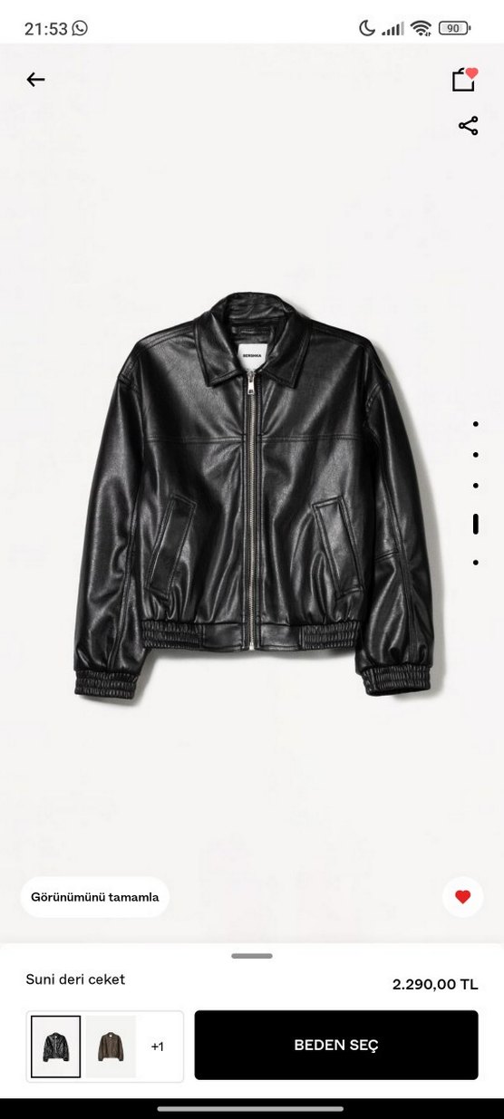 Siyah deri ceket, fermuarlı önü, bantlı kolları ve yuvarlak yakasıyla günlük kullanıma uygun şık bir parça. Parlak yüzeyi ve normal kesimiyle rahat bir duruş sağlar. fiyatta indirim yapıyorum, kullanıldı