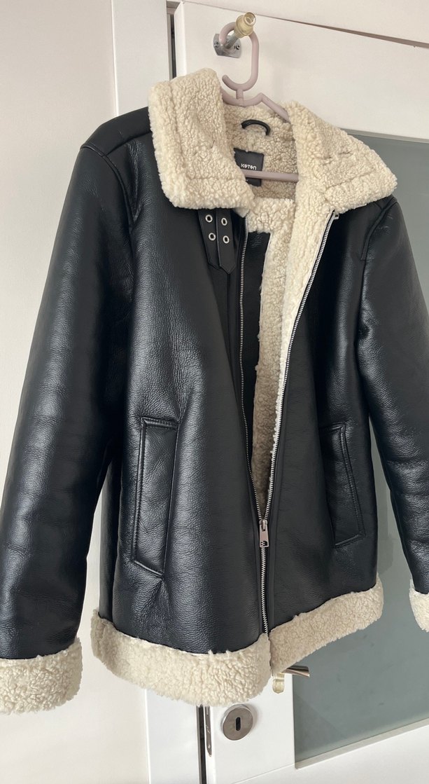 Bayan deri ceket mont koton marka kürklü detaylı, kesimli yakalı, askılı kollu, normal midi uzunlukta deri ceket. Rahat ve şık bir kullanım sunar.