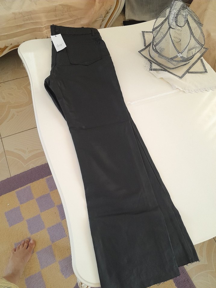 Siyah, kadın deri cepli pantolon. Kalite derisi ve deri kumaştan, günlük sokak tarzına uygun.